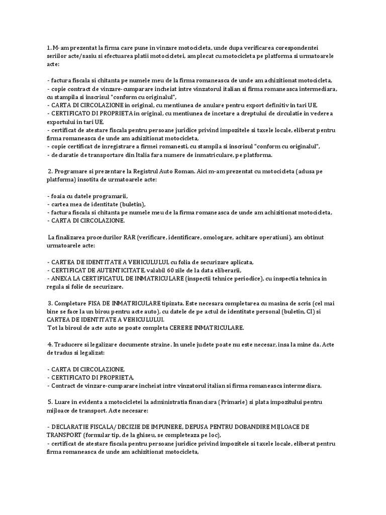 Pe lângă faptul că acest proces este unul dintre cele mai procedurale si. Inmatriculare autoturism pasi de urmat francisc. Carte de identitate autovehicul emisa de tara unde este inregistrat (ex.