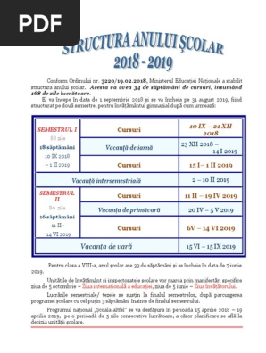 Structura anului școlar 2018 2019 in format word tabel poate fi modificat sau personalizat. Conform datelor publicate prin ordinul ministrului educației naționale nr. În conformitate cu ordinul ministrului educației naționale nr.