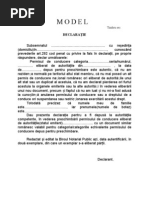 Doriti ridicarea/obtinerea permisului de conducere din strainatate prin procura? Actul de identitate, iar în cazul în care actul de identitate este altul decât cel aprobat prin legea nr. Art.43 din regulamentul de aplicare al o.u.g.195/2005 titularul permisului de conducere, trebuie să declare pierderea, furtul sau distrugerea acestui document, autorităţii emitente, in cel mult 48 ore de la.
