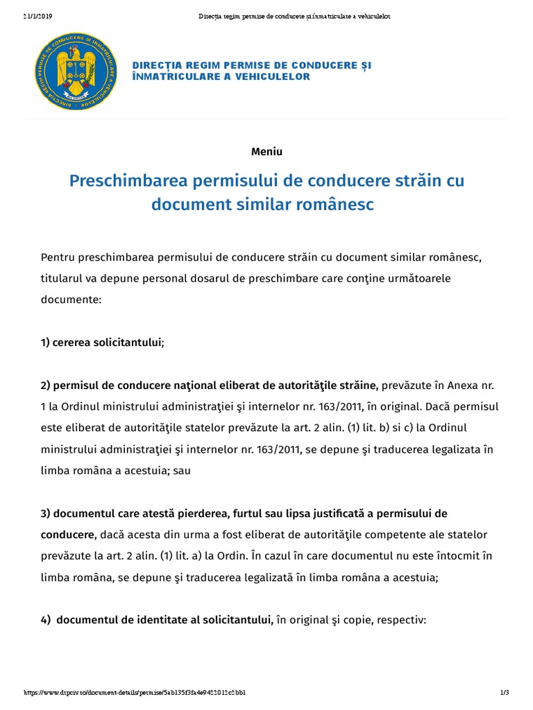 Doriti ridicarea/obtinerea permisului de conducere din strainatate prin procura? Actul de identitate, iar în cazul în care actul de identitate este altul decât cel aprobat prin legea nr. Art.43 din regulamentul de aplicare al o.u.g.195/2005 titularul permisului de conducere, trebuie să declare pierderea, furtul sau distrugerea acestui document, autorităţii emitente, in cel mult 48 ore de la.