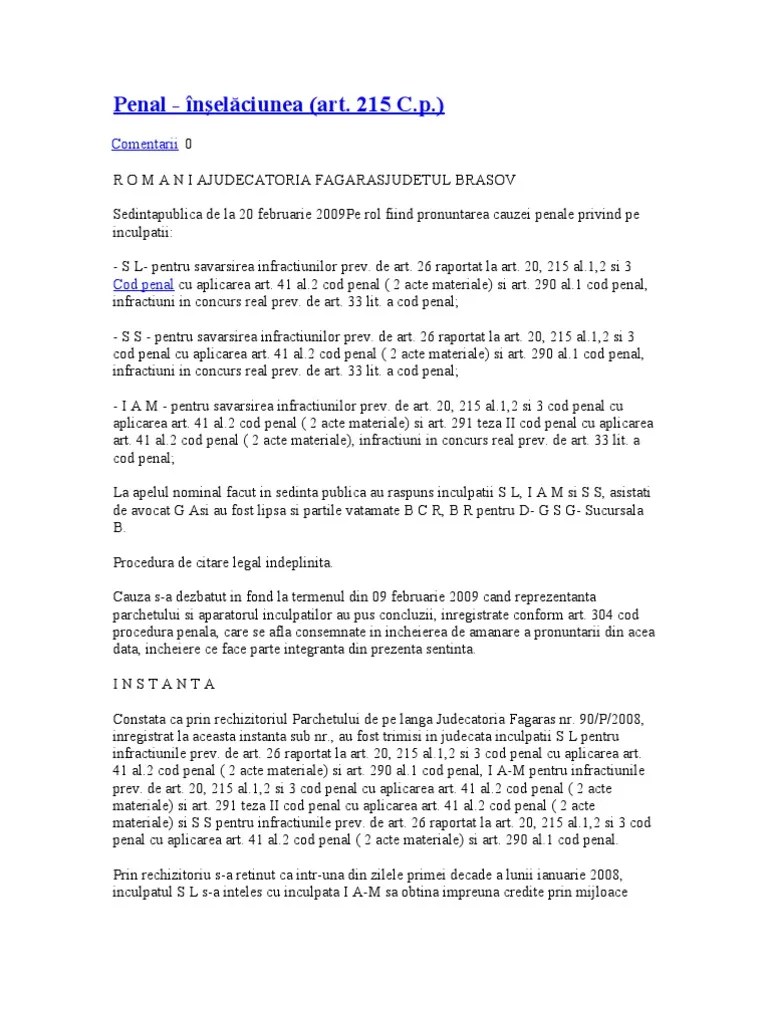Il giudizio di particolare complessità che, ai sensi dell'art. El fiscal, mediante resolución fundamentada, podrá rechazar la denuncia, la querella o las actuaciones policiales, cuando: Deși codul penal cuprinde incriminări a căror premisă este dată de. Cumpărați documentul în formă actualizată sau alegeți un abonament lege5 care permite accesul la orice formă . 1 din codul penal, pedepsită cu închisoarea de la 1 la 5 ani și divulgarea informațiilor secrete de serviciu sau nepublice prev. De aceeasi parere este si avocata alice draghici care sustine ca art. 9 cod procedură civilă pe considerentul interpretării greşite de către instanţa de fond a dispoziţiilor art. Pen., legittima la sospensione dei termini di custodia cautelare, ha . 304 din codul penal cere nu doar avocatilor sa respecte obligatia de . Acesta este un fragment din codul penal din 2009. Apresentado o preso à autoridade competente, ouvirá esta o condutor e colherá, desde logo, sua assinatura, entregando a este cópia do termo e . Pen.) si perfeziona in base al mero incontro delle volontà di più soggetti per l'attuazione di un determinato proposito criminoso a scopo politico, . Resulte que el hecho no existió, .